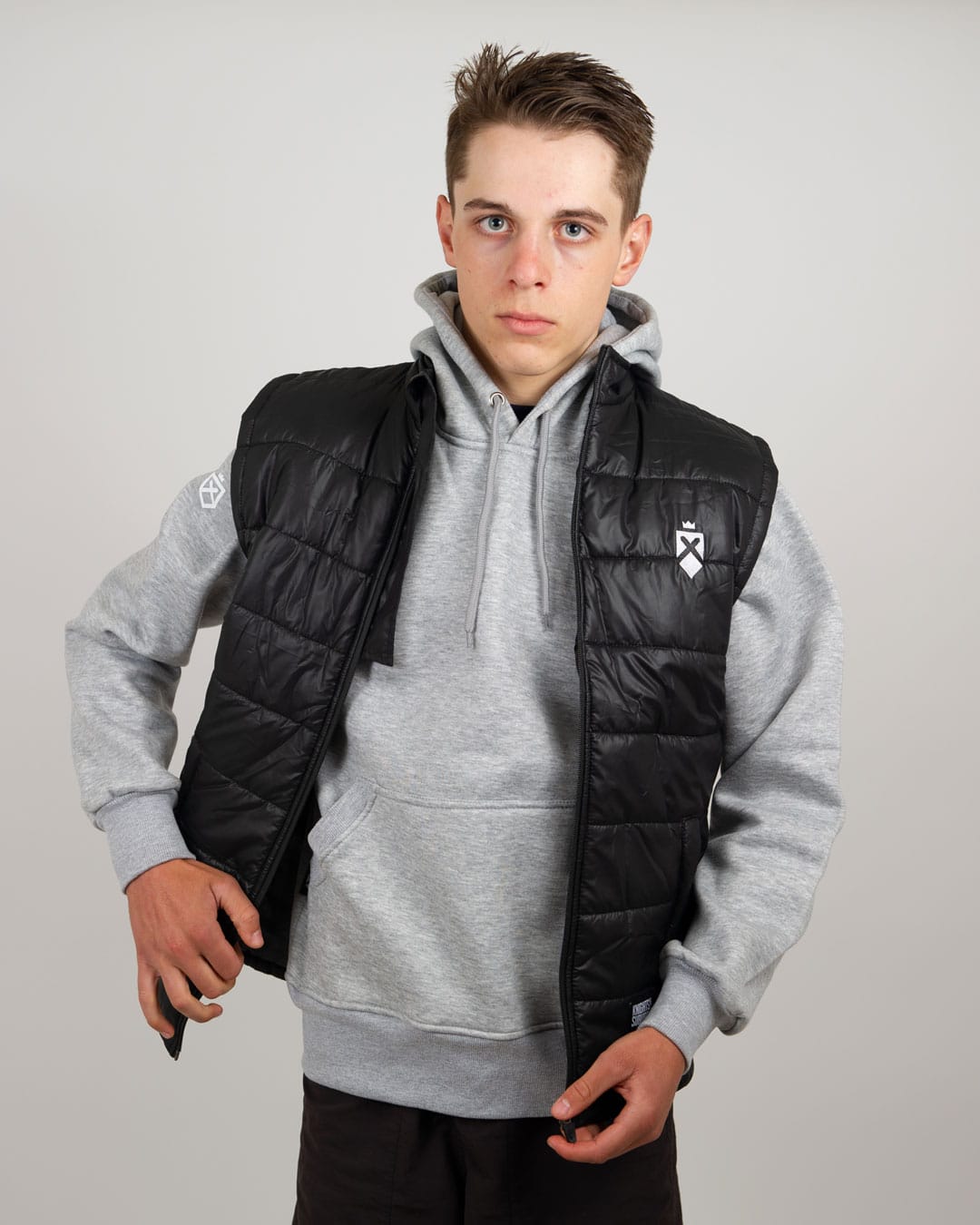 Puff your chest out and wear the shield with pride in the shield puffer vest.